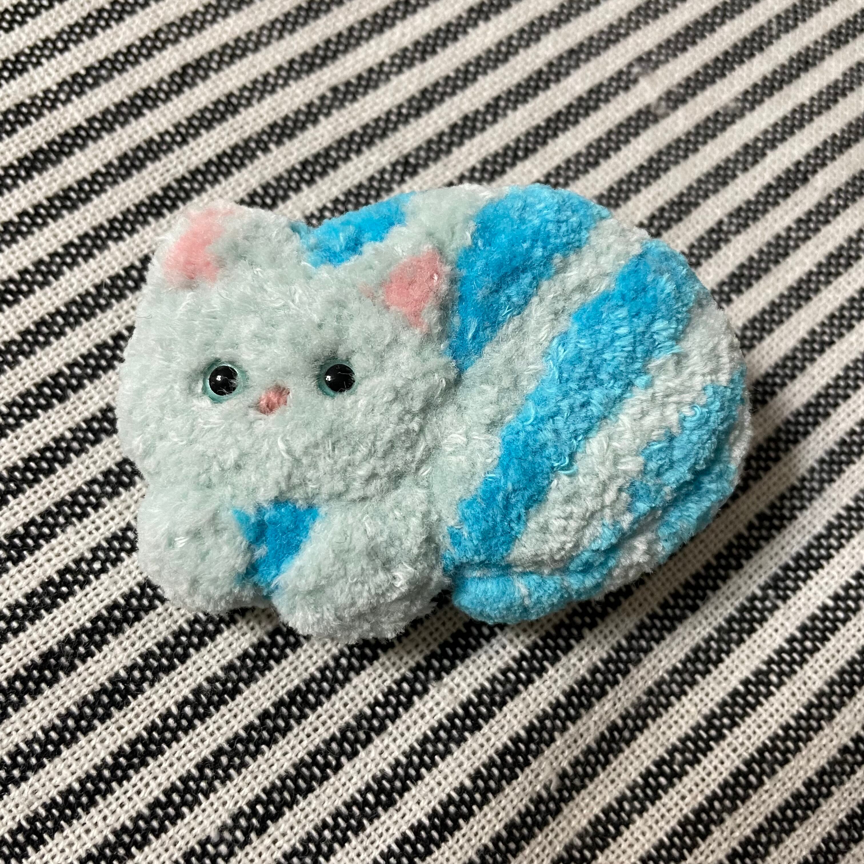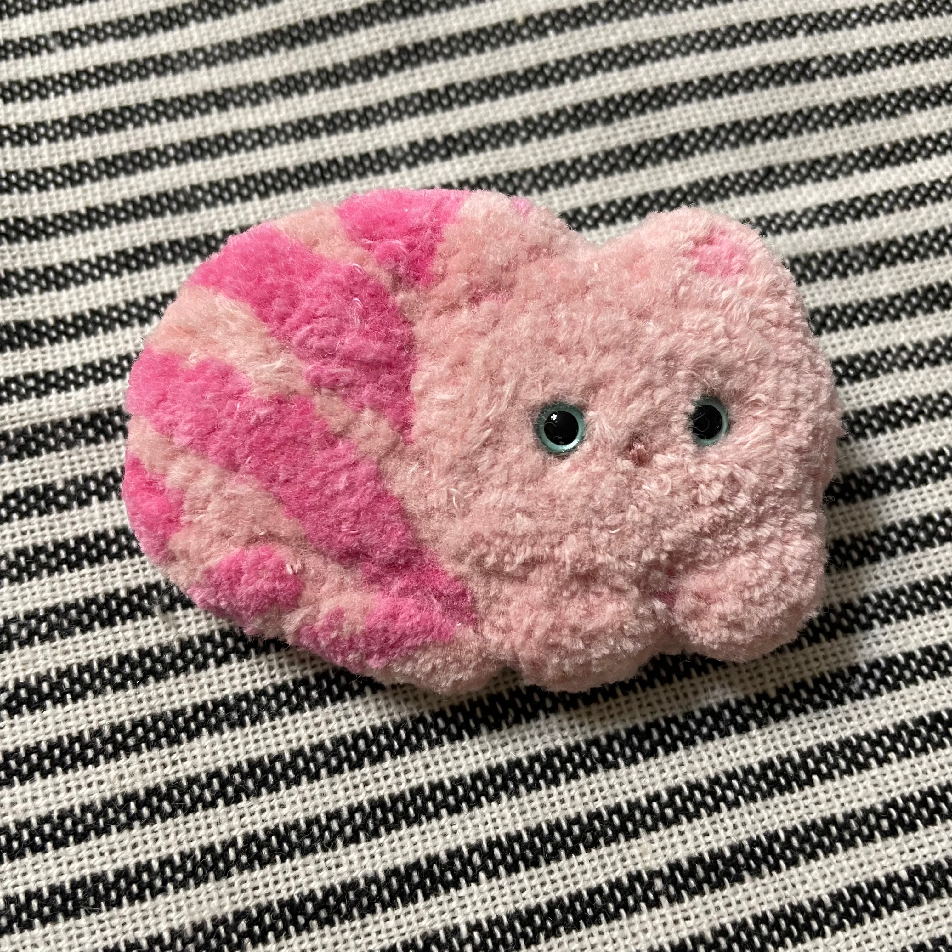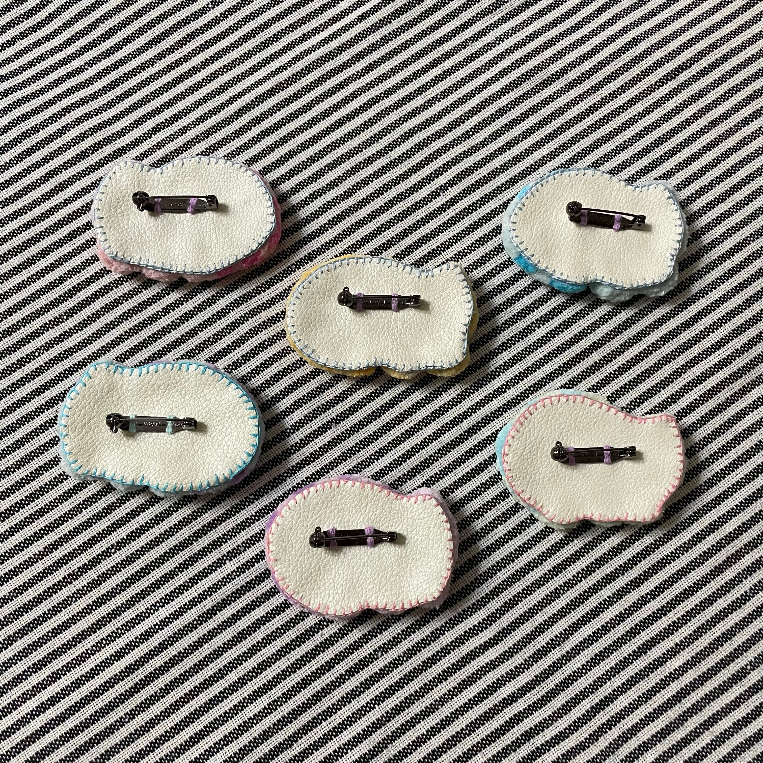 刺繍糸をループカットしてふわふわ部分を作ったチェシャ猫モチーフのブローチです。