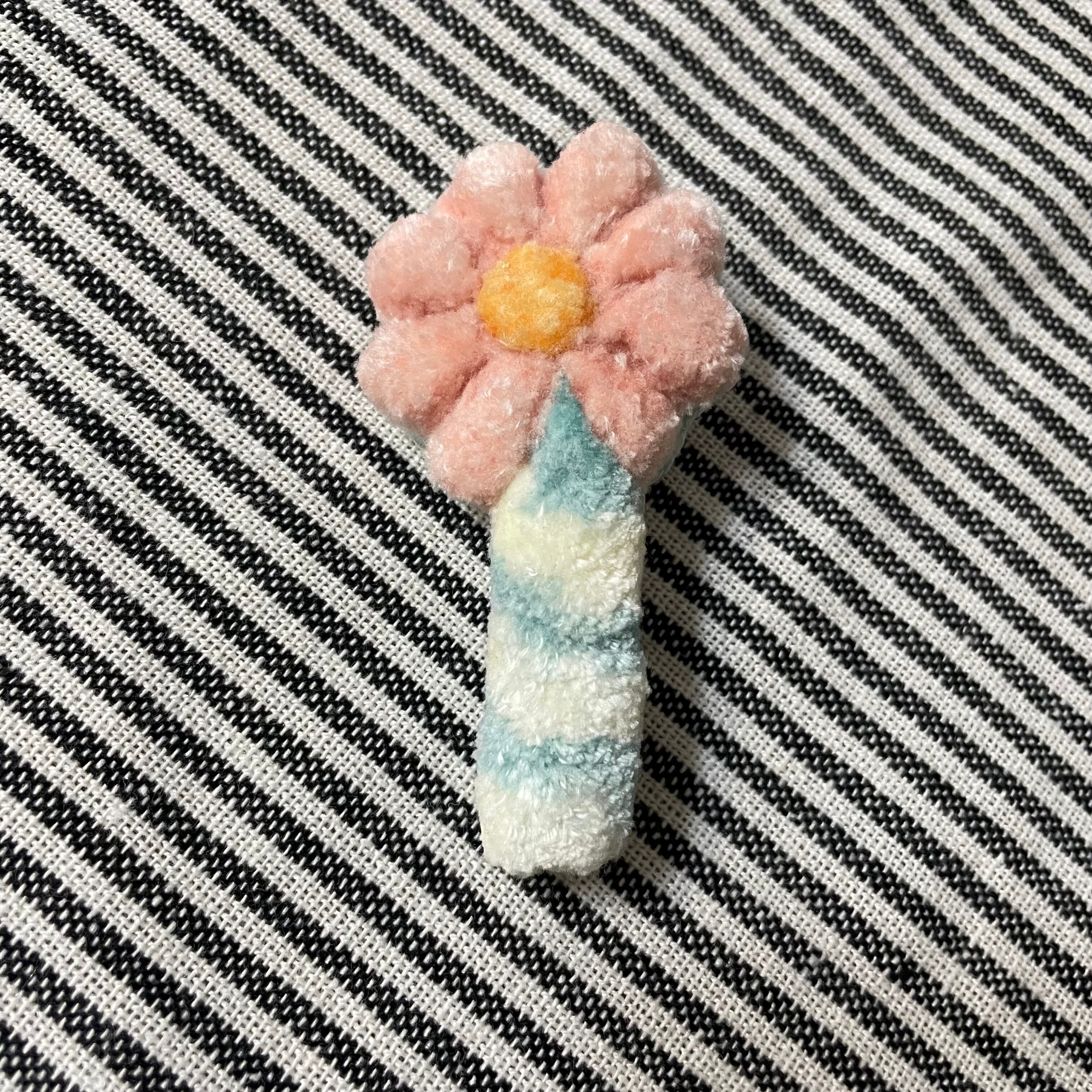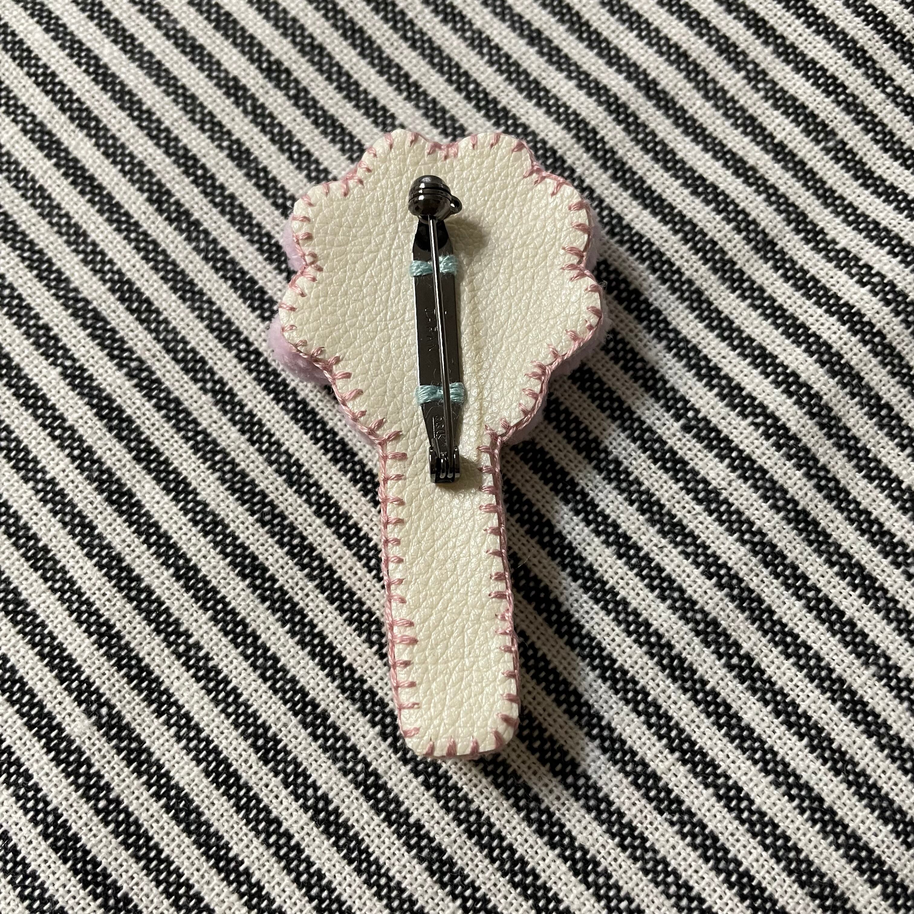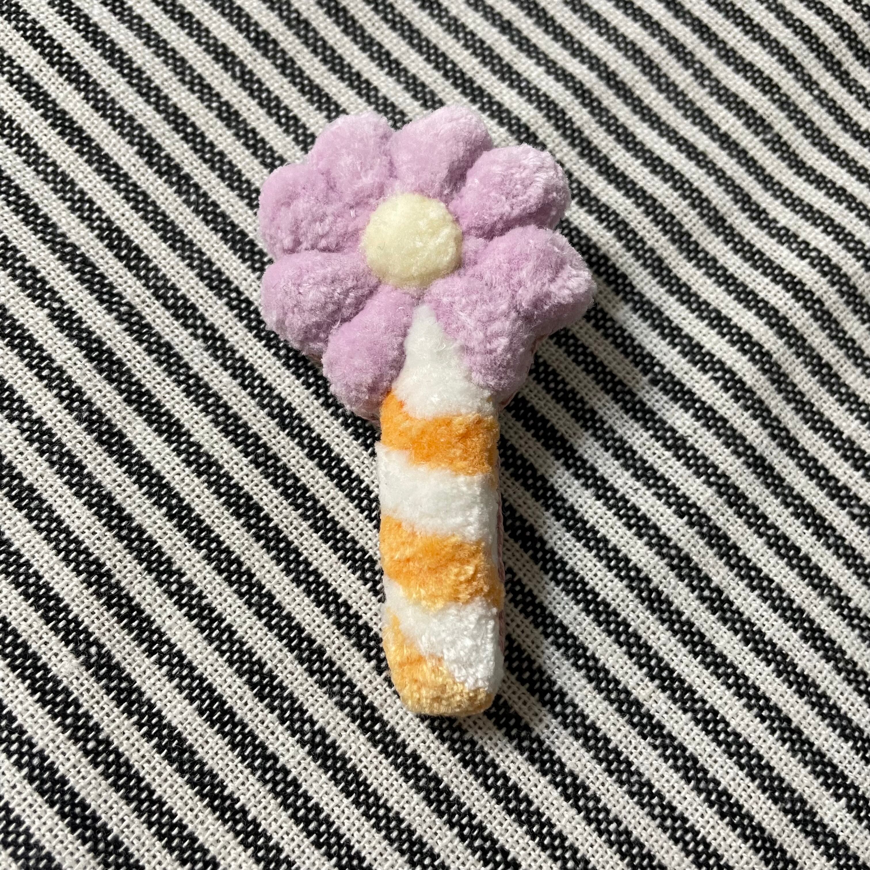 刺繍糸をループカットしてふわふわ部分を作ったマジカルステッキ型のブローチです。ハート、お花、おほしさま、お好みのモチーフの物を選んでいただけると嬉しいです。