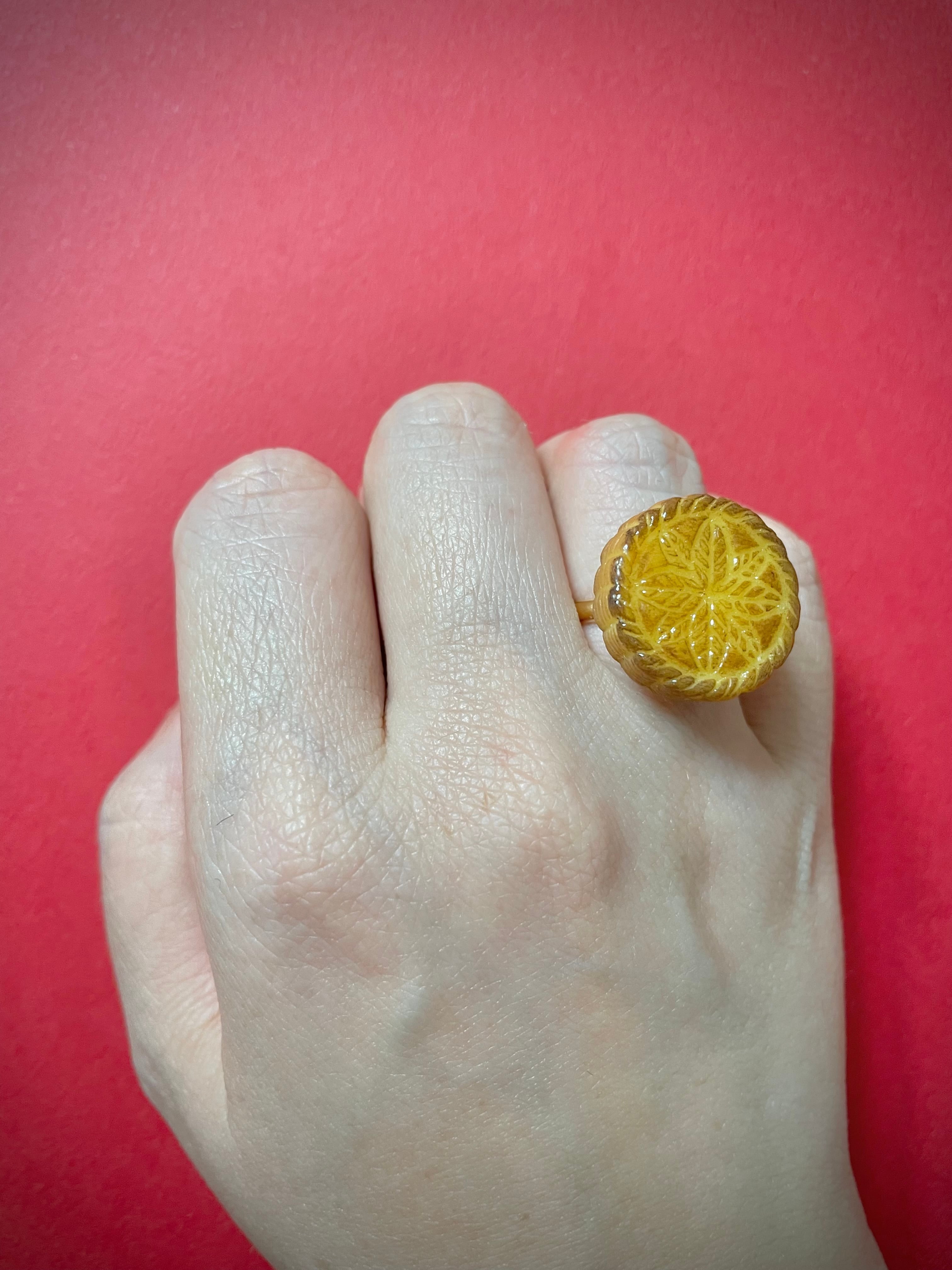 樹脂粘土を使用して制作したガレット•デ・ロワモチーフのリングです。